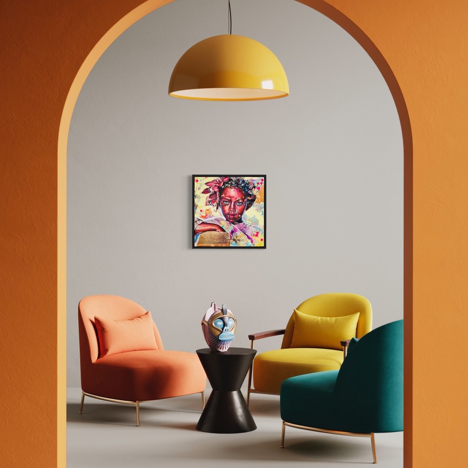 This expressive contemporary portrait is one in the series “The Divine Feminine” celebrating strong women from all cultures, capturing within them inner strength, but also capturing a moment to see their vulnerabilities, their softer side and their feminine essence. They highlight the struggle of women to be accepted as equals, giving women a voice, seeing beauty within and celebrating cultural diversity. Kirsten’s work concentrates around the theme of The Divine Feminine and empowering women, after centuries of suppression of the powerful female energy. Women are the creators of humanity, and that creative force is one of the greatest powers there is. It is now time for women to reclaim their innate strength and wisdom, be heard and accepted as equals and the Goddess energy they possess within allowed to shine forth.